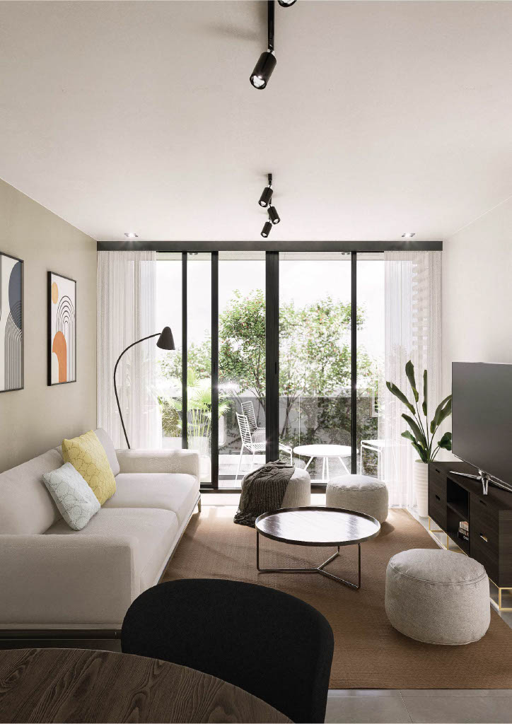 With a total of 40 apartments, these are one- and two-bedroom units, with or without a garage.